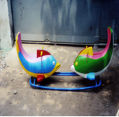 KT: (D150 x R40 x C55)cm. Khung sắt ống 27, dày 1,4 ly Tay cầm ống 21 dày 1,1 ly Sơn dầu nhiều màu, 2 con cá heo nhựa composite.