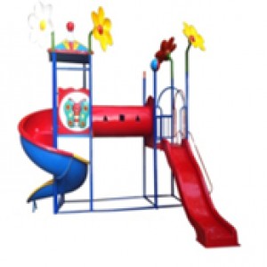 KT: (D350 x R350 x C350)cm Khung chân sắt ống 60 dày 2,5ly, khung sàn V4 dày 3ly, tay cầu thang, lan can 21 dày 1,1ly, sơn dầu nhiều màu. Mặt sàn , bậc thang, máng trượt, mái chòi bằng nhựa composite.