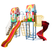 KT: (D650 x R450 x C350)cm Khung chân sắt ống 60 dày 2,5ly, khung sàn V4 dày 3ly, tay cầu thang, lan can 21 dày 1,1ly, sơn dầu nhiều màu. Mặt sàn , bậc thang, máng trượt, mái chòi bằng nhựa composite.