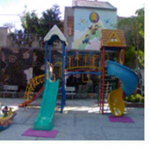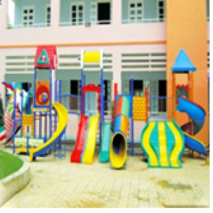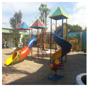 KT: (D450 x R400 x C350)cm Khung chân sắt ống 60 dày 2,5ly, khung sàn V4 dày 3ly, tay cầu thang, lan can 21 dày 1,1ly, sơn dầu nhiều màu. Mặt sàn , bậc thang, máng trượt, mái chòi bằng nhựa composite.