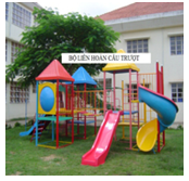KT: (D500 x R600 x C350)cm Khung chân sắt ống 60 dày 2,5ly, khung sàn V4 dày 3ly, tay cầu thang, lan can 21 dày 1,1ly, sơn dầu nhiều màu. Mặt sàn , bậc thang, máng trượt, mái chòi bằng nhựa composite.