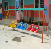 KT: (D300 x R130 x C150)cm Khung sắt sơn dầu nhiều màu, con thú bằng nhựa composite. Khung chân sắt ống 42 dày 1,8ly, khung ngang trên hộp 48 dày 1,4ly, tay treo ghế ống 27 dày 1,2ly sơn dầu nhiều màu.
